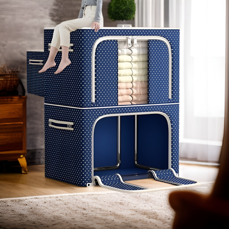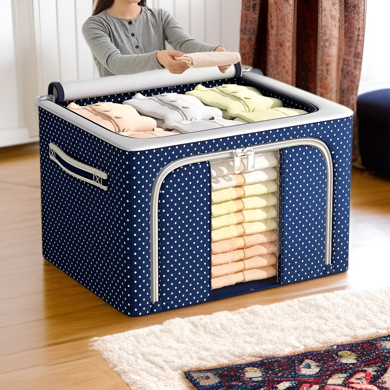 ● 넉넉한 대용량 설계로 계절 옷, 침구류, 잡화 등 다양한 물품을 한 번에 깔끔하게 수납할 수 있습니다. ● 견고한 옥스포드 원단 사용으로 내구성이 뛰어나며, 먼지와 습기로부터 물건을 안전하게 보호합니다. ● 접이식 디자인으로 사용하지 않을 때 공간을 절약할 수 있어, 효율적인 집안 정리에 도움을 줍니다. ● 투명 창이 있어 내부 물품을 쉽게 확인할 수 있으며, 손잡이가 있어 이동 및 운반이 편리합니다. ● 심플하고 세련된 디자인으로 어떤 공간에도 잘 어울려 인테리어 효과까지 기대할 수 있습니다.